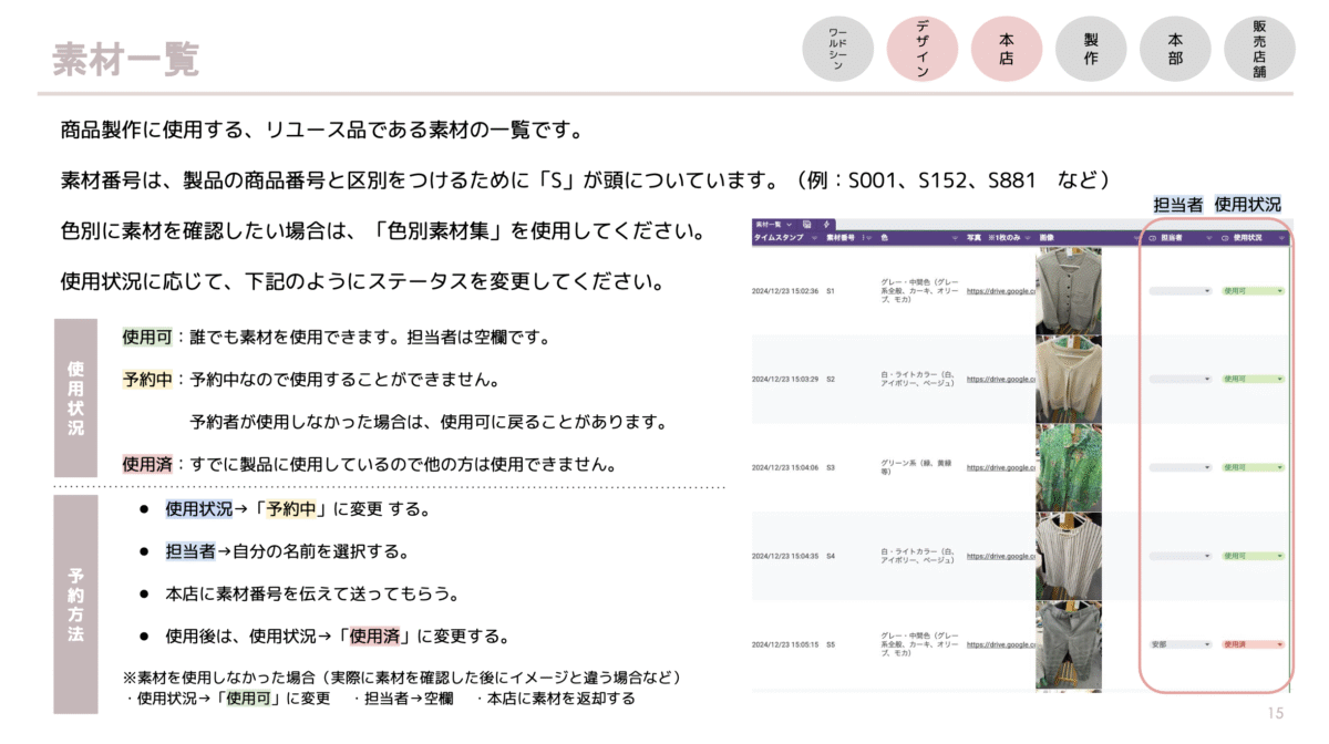 服の集め方から再構築・検品・価格設定・販売まで、すべてのプロセスを可視化しました。